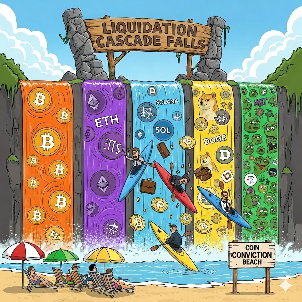At the time of this writing, it is unclear what the short term price of the market will do. After the first major cascade, Bitcoin had recovered some of its losses, signaling the typical first-stage stabilization in which BTC finds footing before strength rotates into the rest of the market. So watch the price of BTC to understand the major trends in the market. Similar situations are common in the crypto world, particularly following long stretches of rising leverage They tend to reset positioning rather than rewrite the long-term thesis.