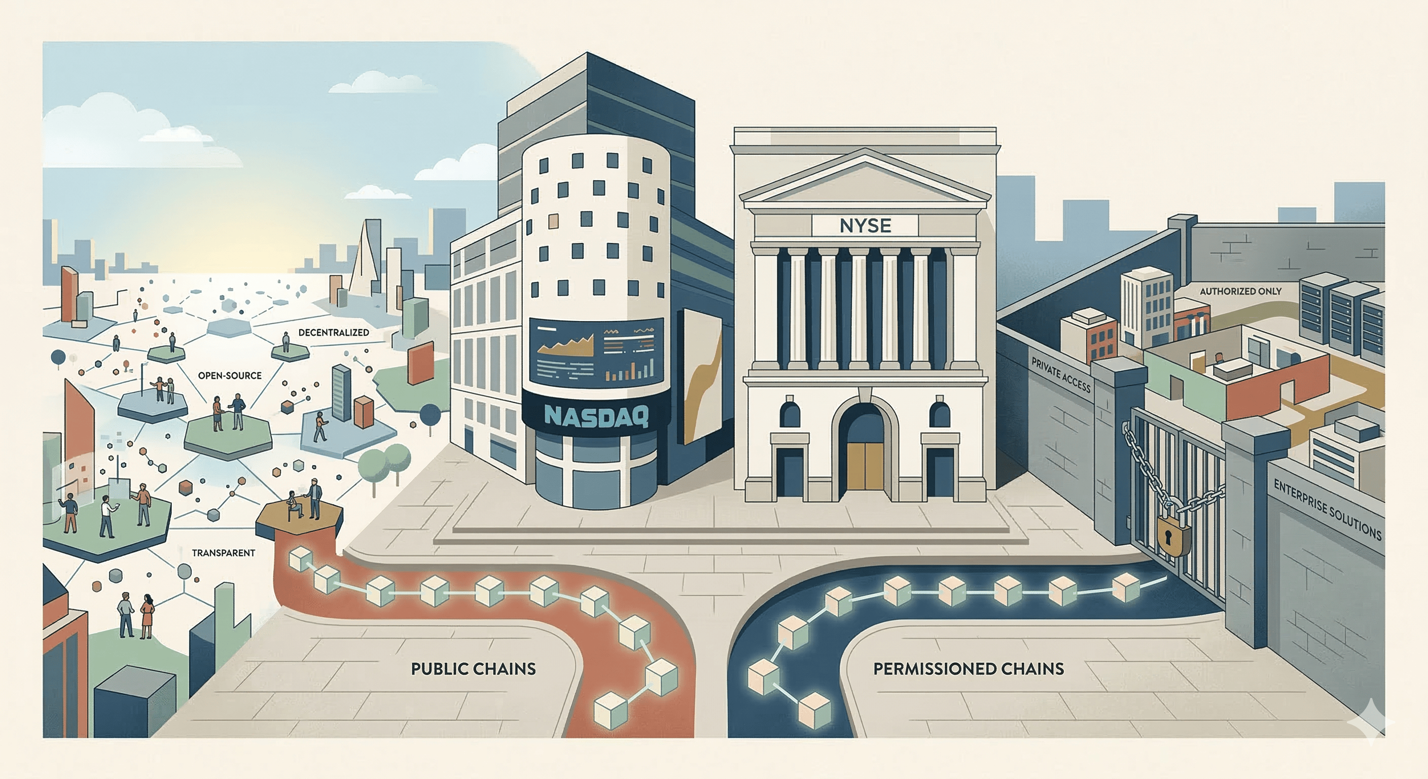 The world's two largest stock exchanges are building infrastructure to tokenize the $126 trillion global equity market on blockchain. They're taking different paths: NYSE is building on a privately permissioned blockchain designed as an on ramp for TradFi. Nasdaq is exploring both public and permissioned models.